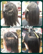 → 酸性縮毛矯正後は、まとまりのある自然な艶髪に。