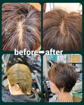 「強いくせ毛でボサボサだった髪が、驚くほど自然にまとまるようになりました。白髪染めも一緒にできて本当に助かります!」